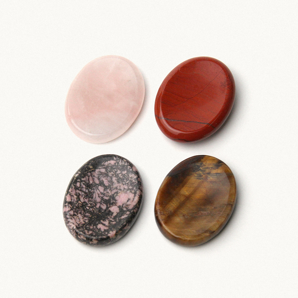 하모니 스톤을 손에 가볍게 쥐고 부드럽게 움푹 패인 러빙(rubbing) 포인트를 엄지 손가락으로 자연스럽게 문지릅니다. 스톤의 느낌에만 집중해도 좋아요. 천연 원석이 전달하는 현재의 감각을 환기하며 마음 속 불안과 밀려드는 나쁜 생각을 멈출 수 있습니다.