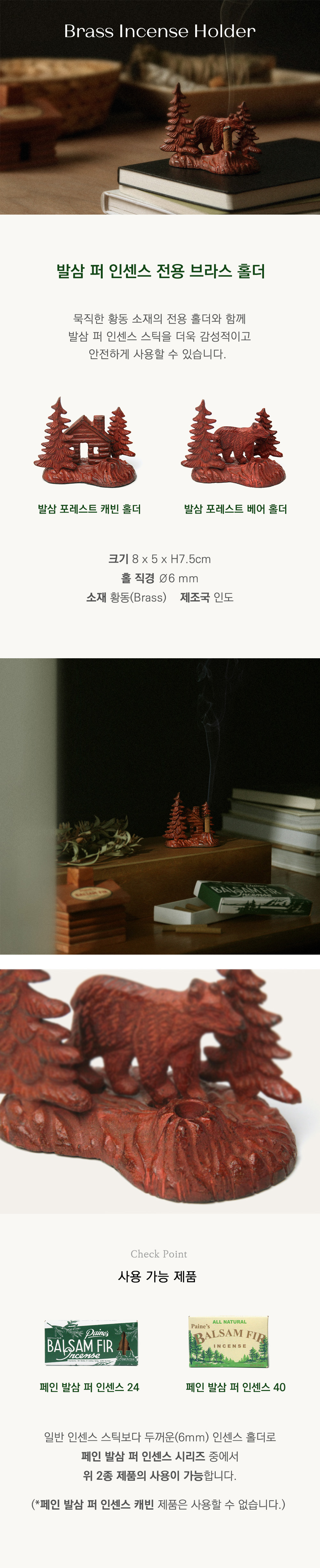 인센스 스틱을 더욱 감성적이고 안전하게 사용할 수 있는 금속 소재로, 섬세하게 세공된 오두막과 곰의 형상이 북미의 발삼 전나무 숲의 목가적 정취를 연상케 합니다.